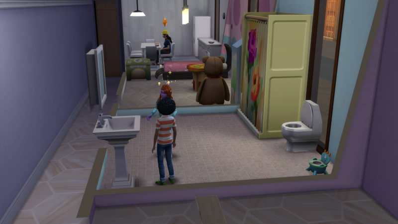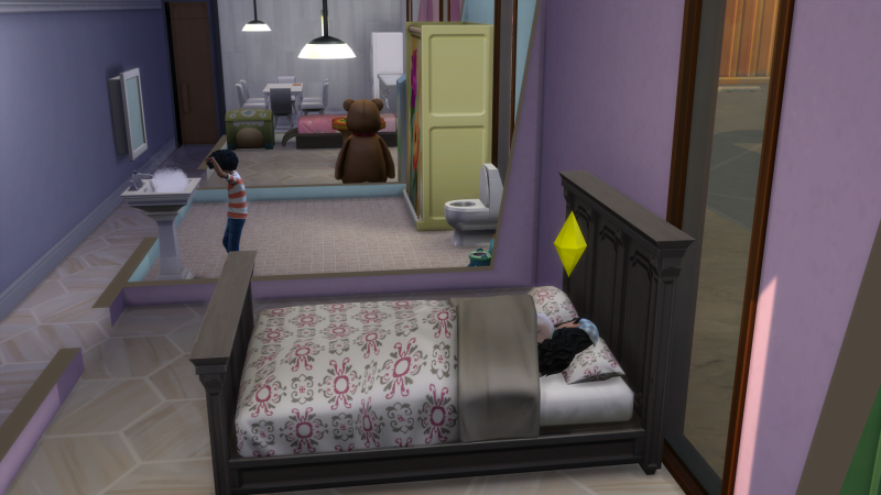 Flynn becomes a child. He rolls the High Maintenance trait and the bodybluilder aspiration.
