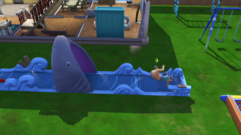 He uses the lawn slide